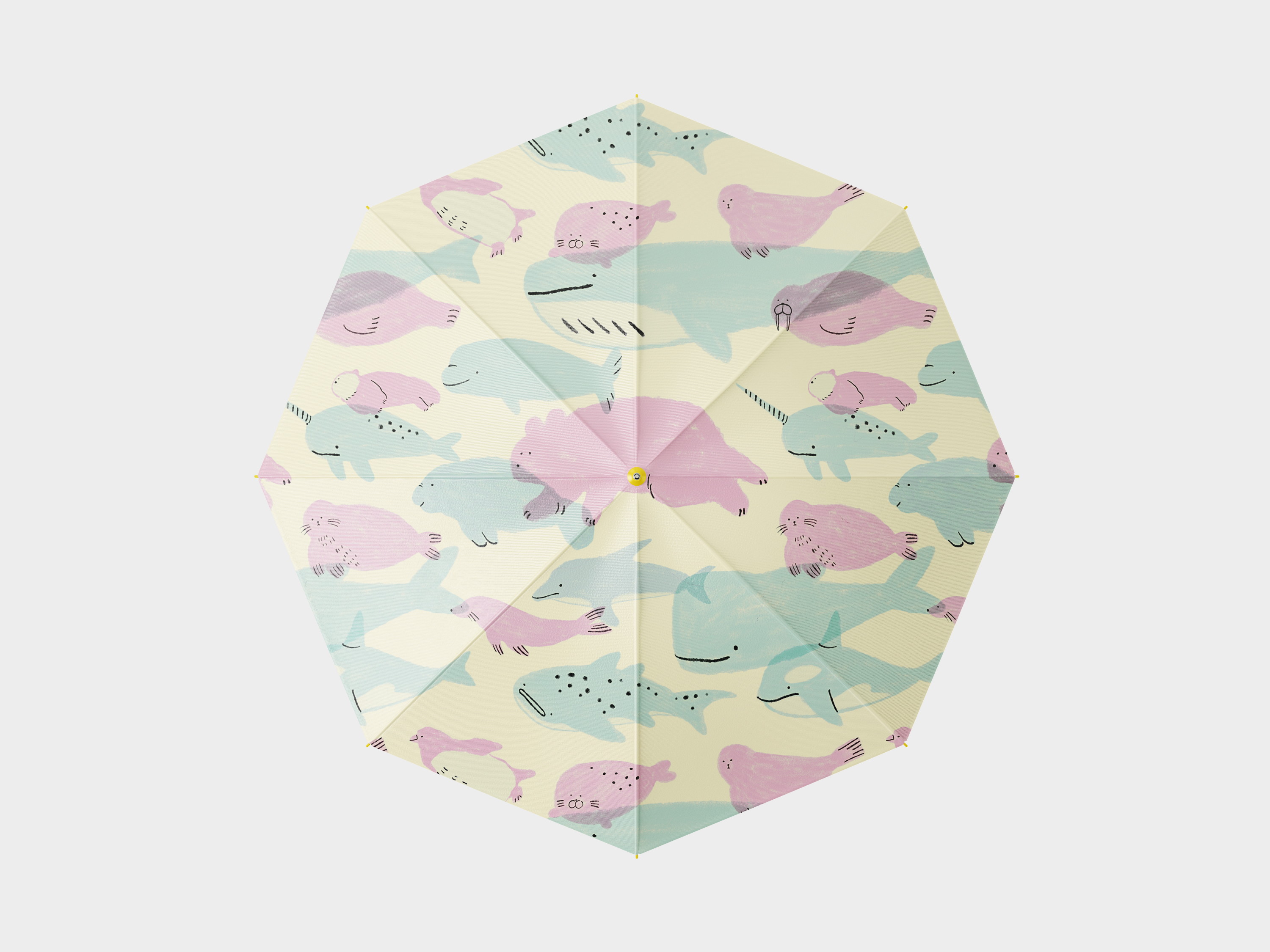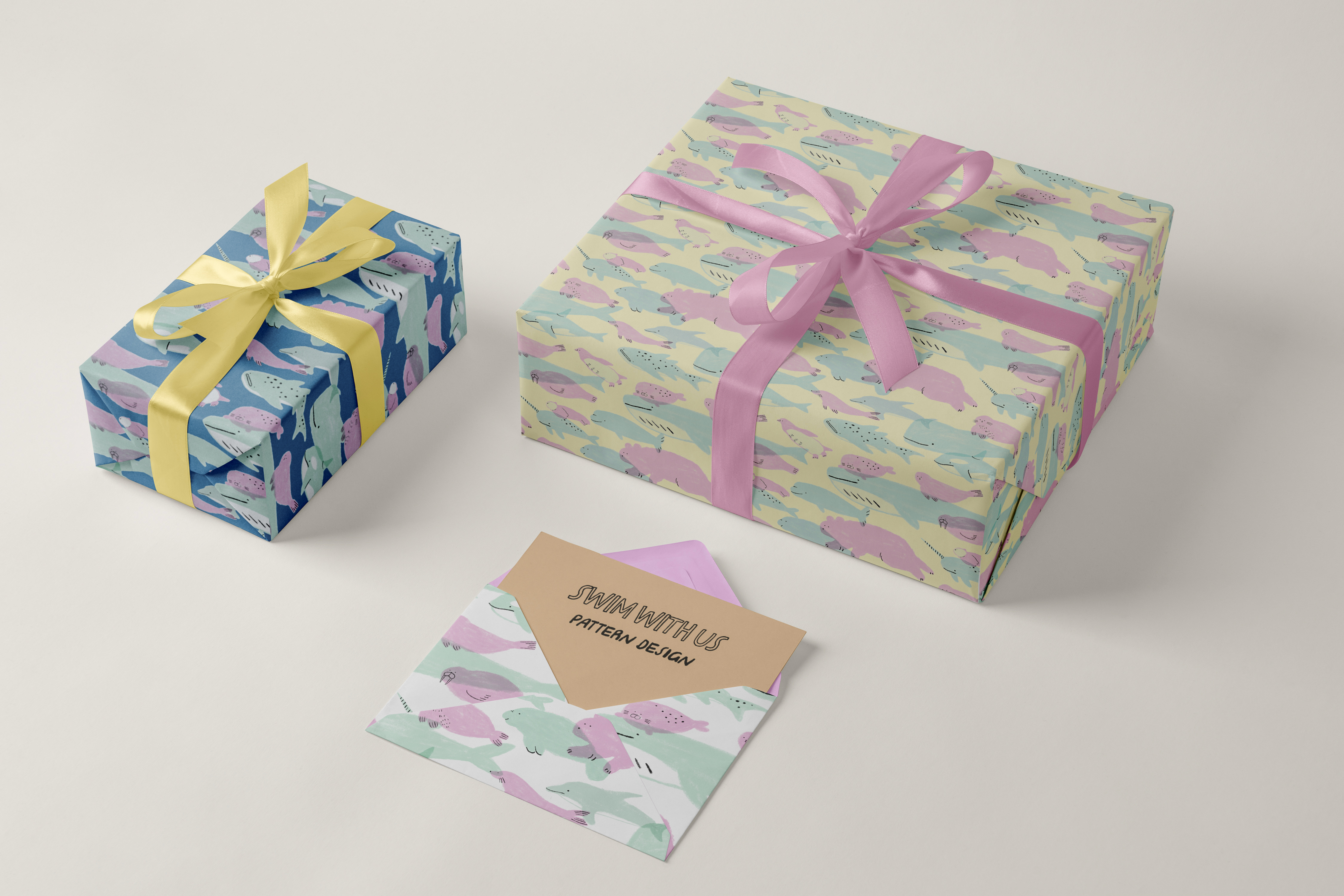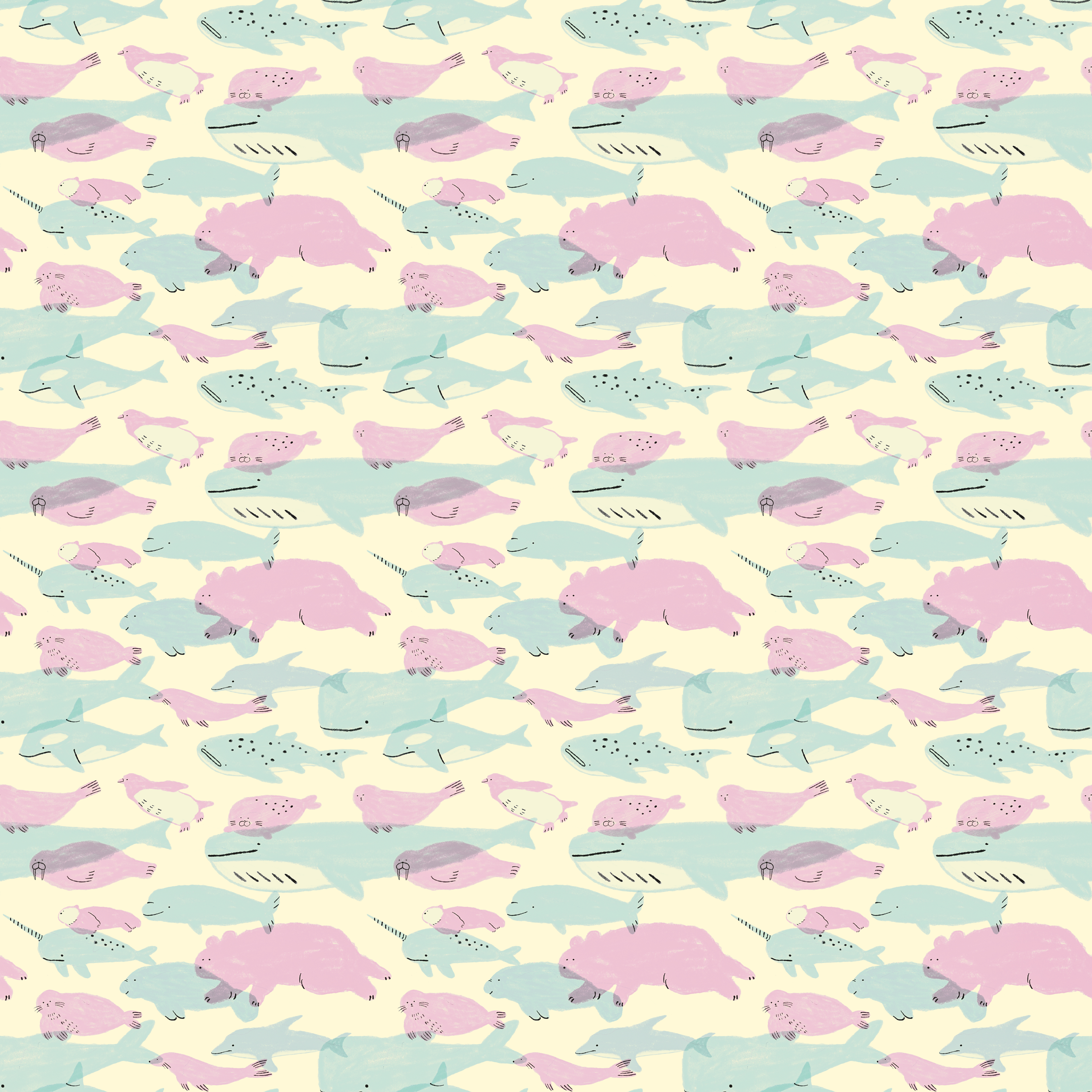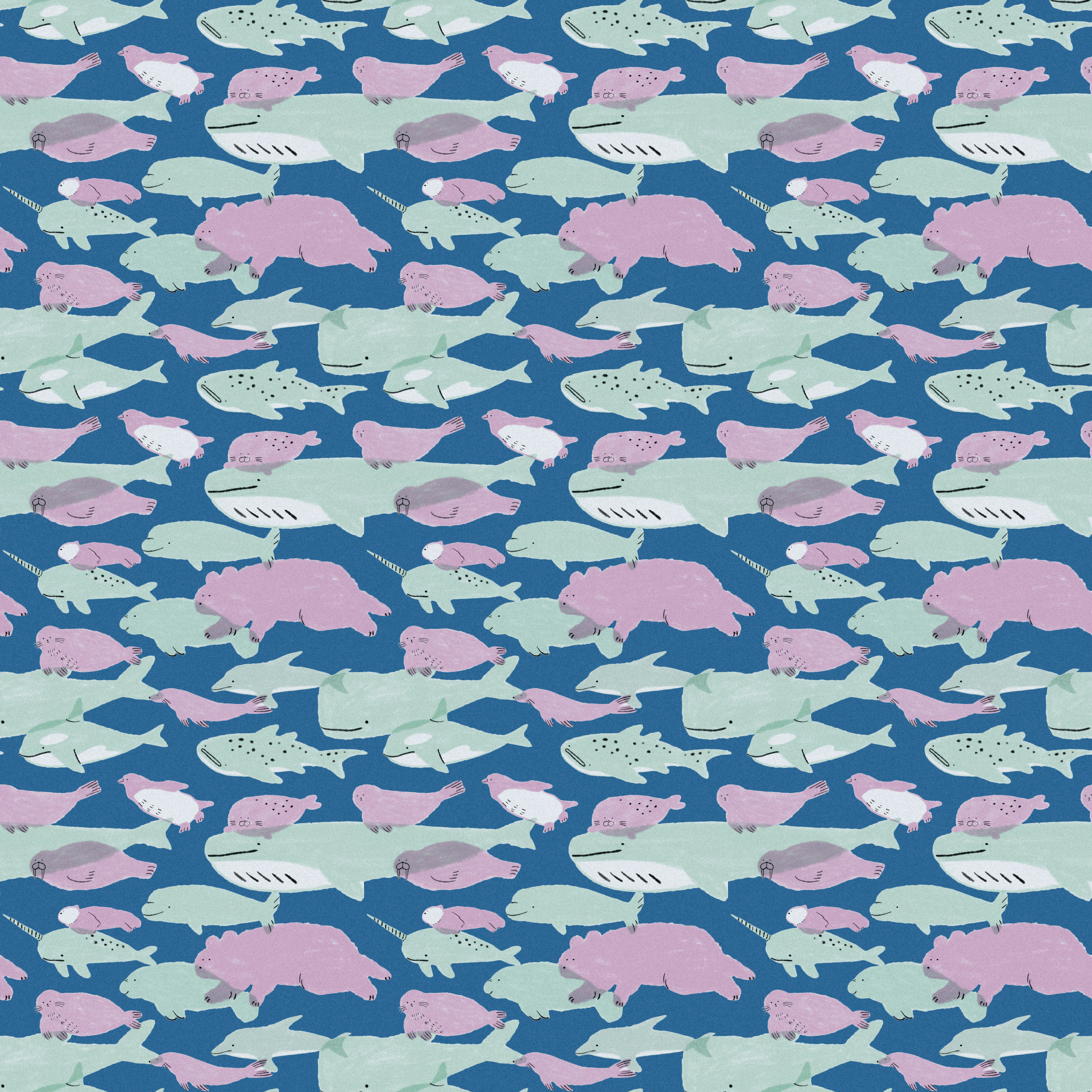 Swim With Us is a sea-mammal themed pattern set of two designed for stationery and umbrellas.